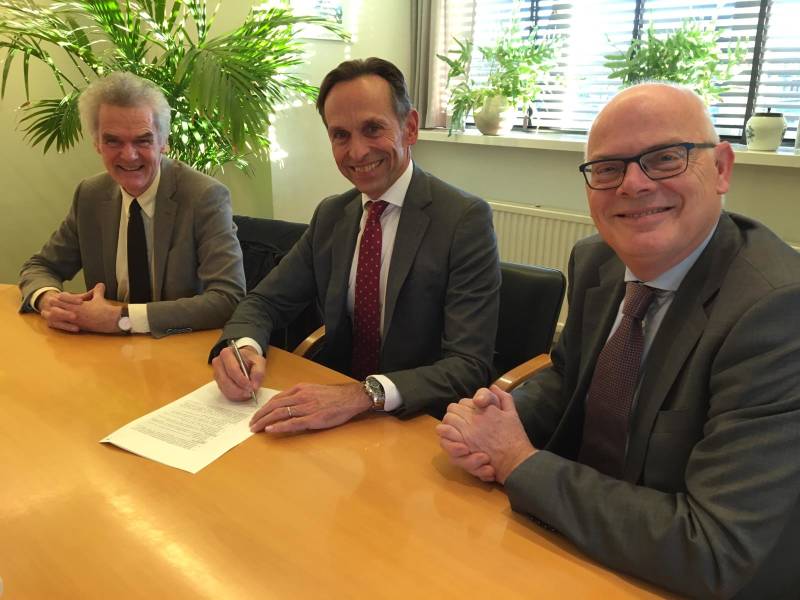 Van links naar rechts: Willem Boogaard, Jos van Spreeuwel, Alfred Kool en burgemeester Jan van Belzen (Foto: Sebastiaan van Mill)